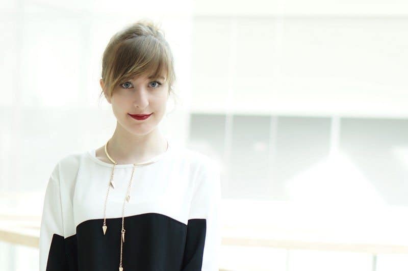 Świetna prosta klasyczna stylizacja, idealna do biura. Boska sceneria – z takim tłem nie potrzebujesz wiosny 😉