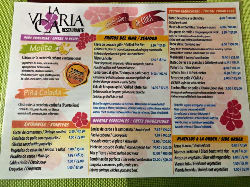 Jeśli chcesz spróbować langusty, ryby która jest trudno dostępna w Europie, to w casa particular proponowali nam ją na obiad za 26 CUC, co wydaje mi się trochę wysoką ceną, ale nie znam się na rybach.