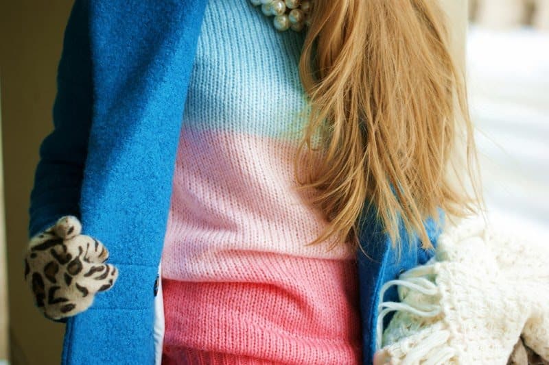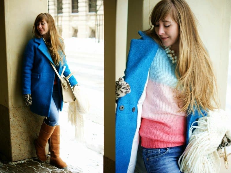 Recently I was looking for a nice, warm coat to keep me alive during this horrible winter. This blue choies coat won the race! This is actually the warmest coat in my closet and I can successfully put some extra layers under it (like for example 3 more sweaters…)! This time I just picked my new ombre pastel sweater. It’s lovely, isn’t it?