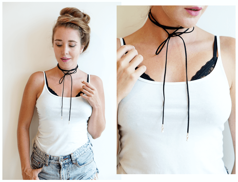 Tak podstawowej biżuterii nie da się chyba zepsuć. Choker jest wiązany, z materiału podobnego do rzemyków dostępnych w pasmanteriach, wykończony perełkami przymocowanymi ogniwami jubilerskimi w kolorze złotym. Jest wygodny, nie uwiera ani nie „gryzie” w szyję, więc w tej cenie grzech go sobie nie kliknąć. On kosztuje 2 złote…
