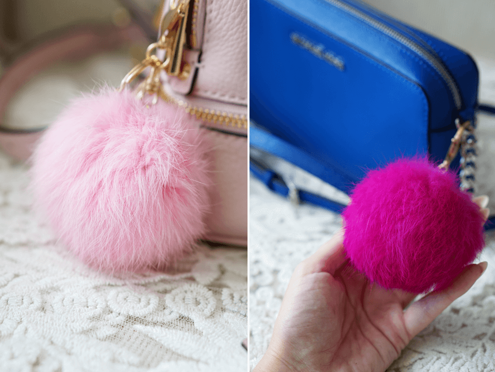 Jakiś czas temu puchate breloczki stały się absolutnym hitem i must have każdej dziewczyny. Trochę w tym przesady jest, bo w końcu ślepe podążanie za modą do niczego nie prowadzi. Jednak jeśli jesteście fankami ciekawych dodatków, albo chcecie zmienić oblicze swojej starej torebki, to polecam Wam zainteresować się puchatymi kulami, bo wykonane są świetnie i wyglądają bardzo porządnie. Sprzedawca twierdzi, że są wykonane z naturalnego, wysokiej jakości futra królika, ale moim zdaniem w tej cenie to niemożliwe. Moje kolory to „red rose” i „pink”, chociaż dałabym sobie obciąć rękę za to, że zamawiałam blady róż i beż, a nie oczojebny róż. Tak czy inaczej dobrze się stało, bo różowa kulka pasuje idealnie do mojej nowej torebki. Zobaczcie jaki ma kształt, moim zdaniem jest znacznie praktyczniejsza i zgrabniejsza, niż popularna wersja tego modelu.