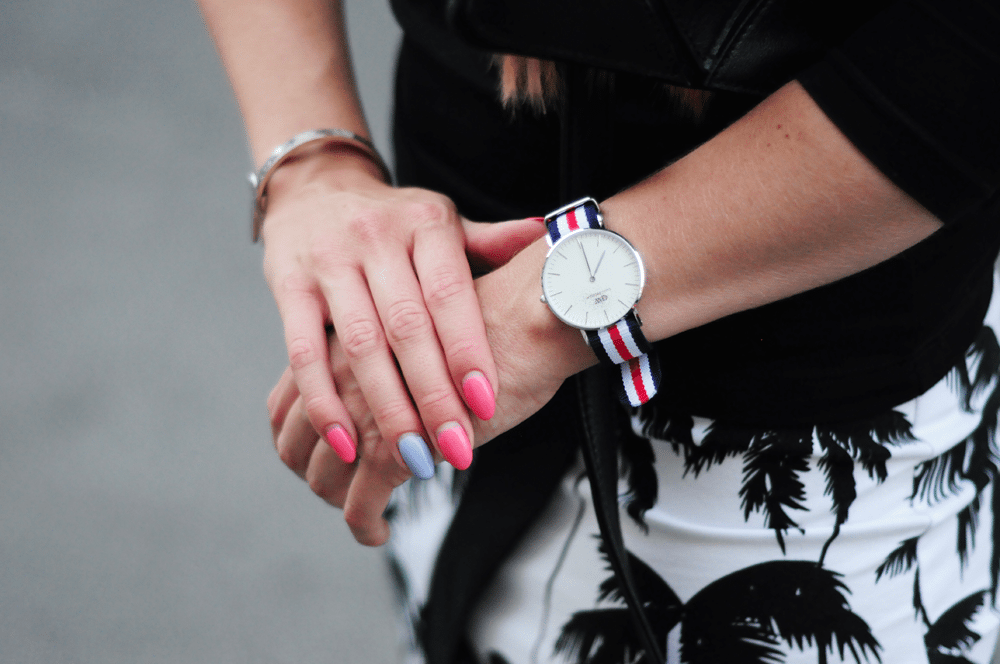 zestaw na słoneczny dzień czarno biały palmy dw palmy spódnica ootd ootd spódnica w palmy czarno biały zestaw palm trees skirt spódnica outlet warszawa daniel wellington nato strap bloggers blogerki z warszawy ootd spódnica w palmy ostatnie dni lata blogerki zestaw na jesień wiązane szpilki za kostkę sheinsidetop/top – Stradivarius