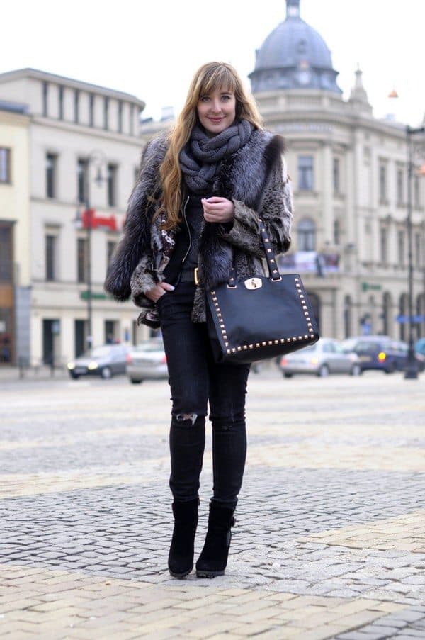 You look gorgeous in this all black outfit! The bag is pure elegance!! Gorgeous hair and scarf as well!