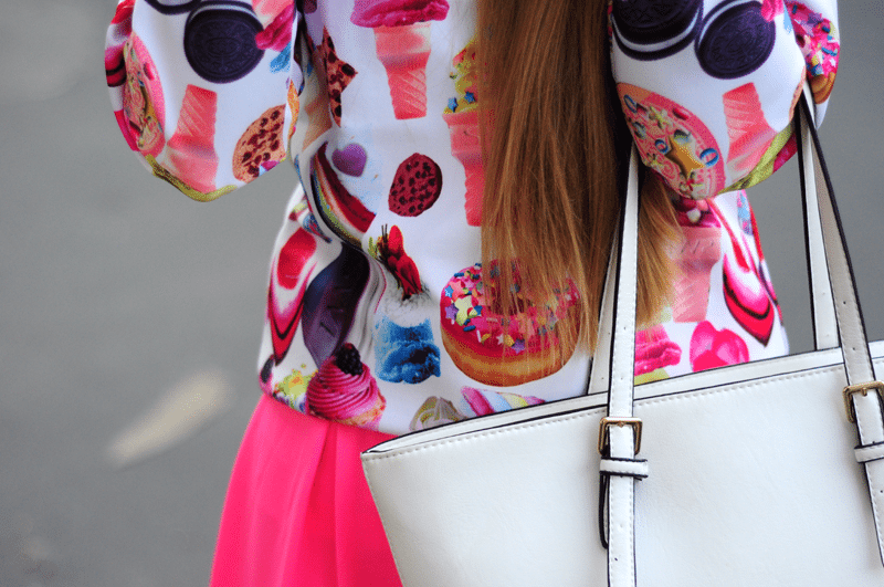 Mam wrażenie, że nie było mnie tu sto lat! Sesja zdawała się trwać wiecznie, katalog sposobów, jak uniknąć nauki poszerzyłam o kolejny milion punktów. Odkryłam sposób na idealne okna bez smug, smażyłam zajebiste placki bananowe (tu przepis) i cieszyłam się ostatnimi chwilami spędzonymi z Martynką w Lublinie. Gorzkie łzy chwilowego rozstania słodziłyśmy lodami i nieprzyzwoicie słodkimi zdjęciami na insta. Jakby tego było mało, postanowiłam sama stać się najsłodszą dziewczynką w Lublinie (i przy okazji niezłą atrakcją turystyczną) i przyciągając miliony spojrzeń wystroiłam się w sweetaśną, cukieraśną bluzę. Rzygacie już tęczą?
