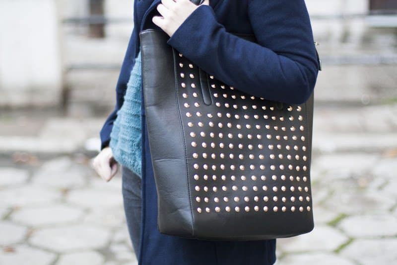 I love everything about this outfit!!! bag, your sweater, your dog! all!
