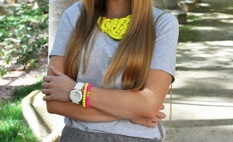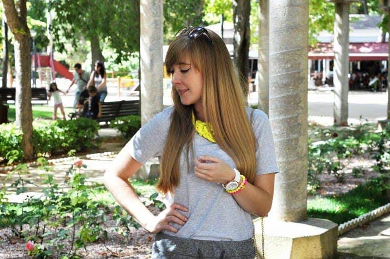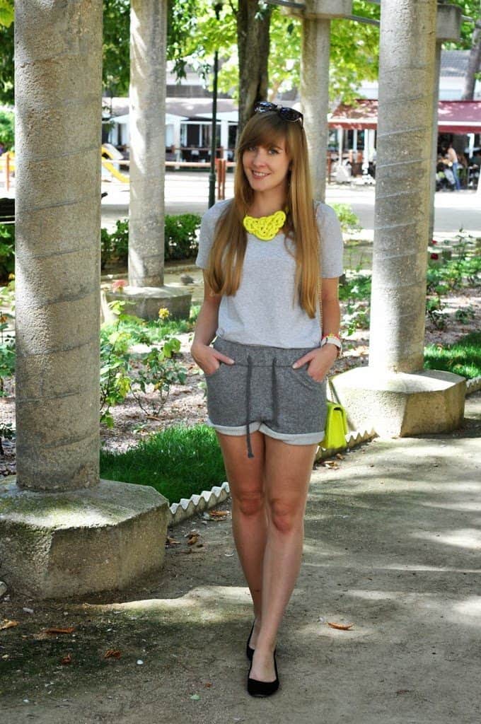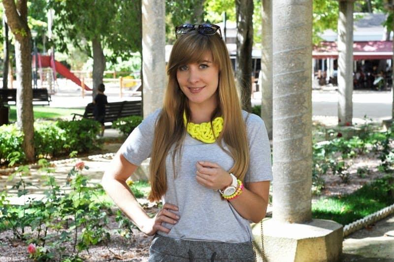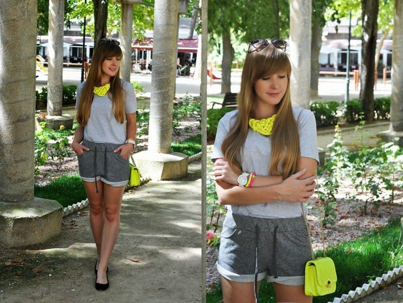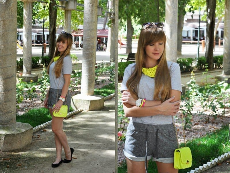 Nikon nastawiony na tryb auto spisuje się w tych warunkach bardzo dobrze. Nie miałam cierpliwości do ustawiania pola ostrości, a zdjęcia wyszły całkiem dobrze. Pierwsze dni w Hiszpanii są dla mnie totalnie szalone, nie jestem przyzwyczajona do tego, że muszę o wszystkim pamiętać i wszystko organizować sobie sama. Dla mnie to będzie wielki kurs samodzielności i oszczędzania 😉 Wyobraźcie sobie, że ponad kwadrans szukałam w sklepie możliwie najbardziej ekonomicznego płynu do prania (nie wiedząc jak jest po hiszpańsku płyn do prania) i biegałam po mieście w poszukiwaniu ręcznika, który nie kosztuje 15 euro (dzięki Panie za chińskie centrum handlowe). Podczas tych maratonów szpilki ustępują miejsca czarnym balerinkom z H&M, a superwygodne szorty z sheinside zastępują sukienki. Hiszpanie nie stroją się na imprezy, dziewczyny wchodzą do klubu w płaskich sandałach, jeansach i t-shircie, więc zaczynam się martwić, że moje cztery pary szpilek, które mój Skarb tak zacięcie upychał w walizce, zwyczajnie się nie przyda! Skoro jednak wszyscy stawiają na wygodę, to i ja spróbuję! Żeby ożywić szary, dresowy zestaw, dodałam neonową biżuterię i małą torebkę z martofchina. Nazwa sklepu może nas odstręczać, jednak zapewniam, że jakość ich ubrań i dodatków nie ustępuje sieciówkom. Czarne szpilki od nich sprawują się zdecydowanie lepiej po sześciu imprezach i dwóch wypadach na miasto niż te czarne baleriny z H&M, które mam na sobie drugi dzień i już są porysowane.