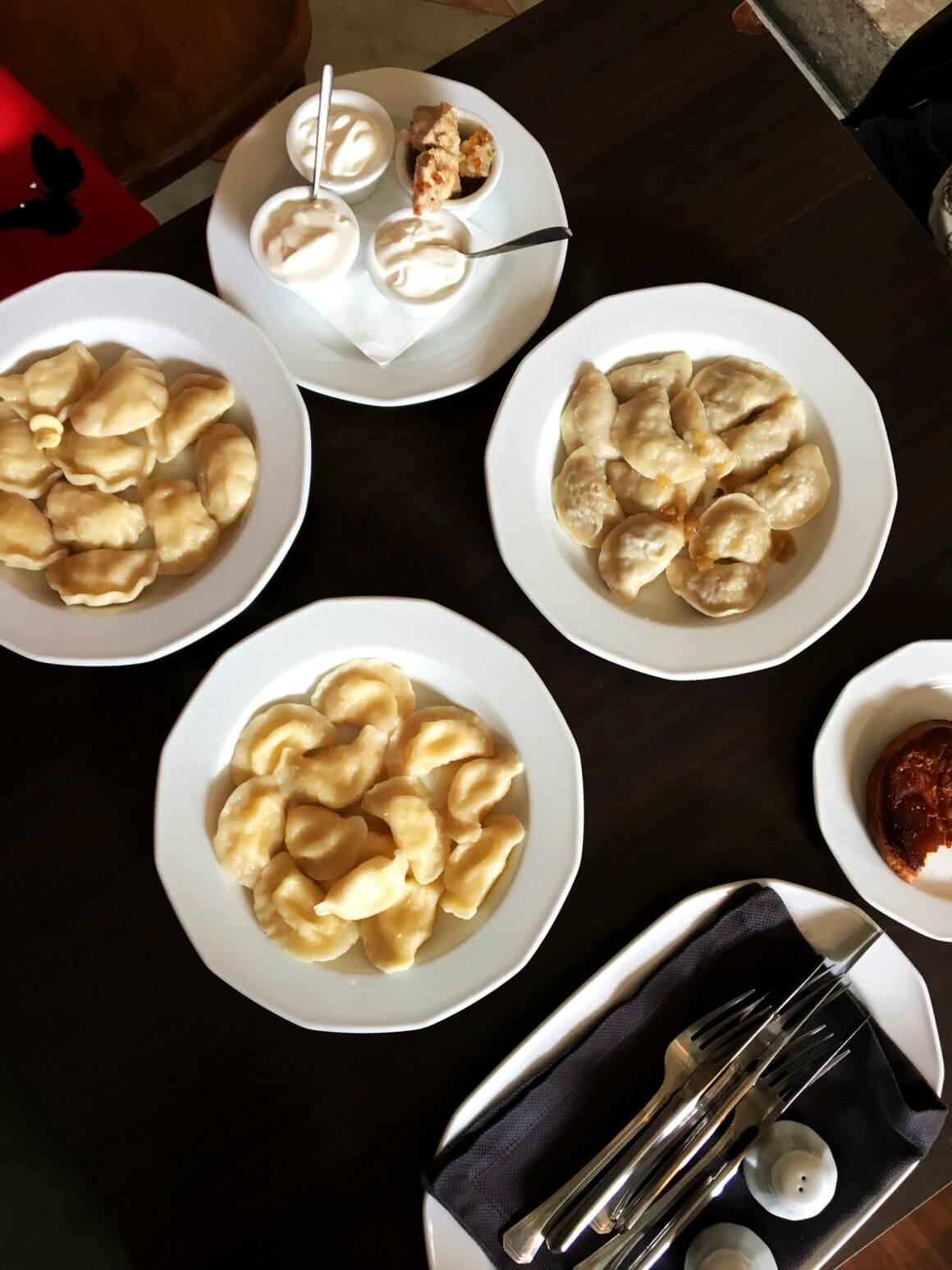 Jedna z polecanych w przewodnikach restauracji, którą udało nam się odwiedzić dopiero ostatniego dnia. Przyjemne wnętrze, miła choć powolna obsługa i dobre jedzenie, chociaż nie tak dobre, żeby śniło nam się po nocach. Jeśli będziecie w pobliżu, wpadnijcie tam, ale specjalnie nie warto się tam wybierać. Zamówiliśmy pierogi, chociaż pora była zdecydowanie śniadaniowa. Dania były smaczne jak wszędzie we Lwowie. Mam wrażenie, że tam polska kuchnia jest smaczniejsza niż w Polsce!