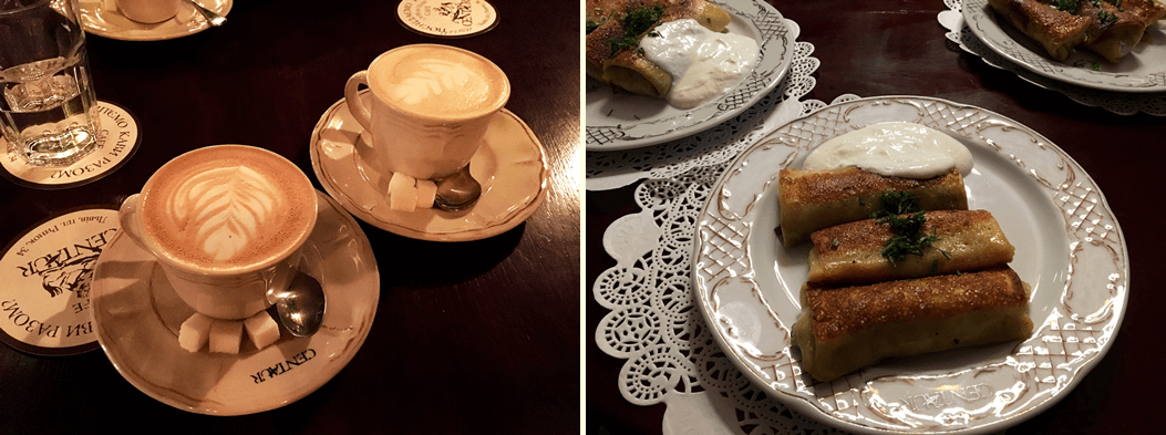 Centaura odwiedziliśmy dwa razy – raz na kawę lawendową, która okazała się fatalna i kwaśna, drugi raz na śniadanie. Wnętrze restauracji jest strasznie ciemne, jedni powiedzą klimatyczne, ale ja osobiście lubię widzieć, co mam na talerzu. Obsługa chociaż miła, chyba naciągnęła nas lekko na rachunku – za podwójne espresso policzono jak za dwie osobne kawy, a za wodę do tego espresso – więcej niż za moje lawendowe cappuccino. Mimo tej sytuacji postanowiliśmy wrócić drugi raz i spróbować śniadania. Zamówiliśmy naleśniki ze śmietaną i z cielęciną, które smakowały całkiem nieźle, ale były zimne, a na herbatę do nich nigdy się nie doczekaliśmy. Więcej tam nie wrócimy!