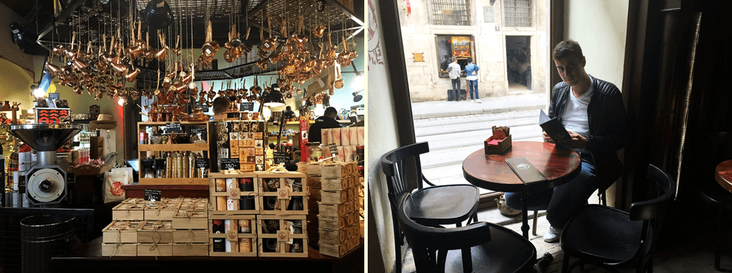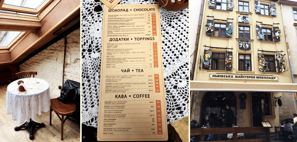 Wszyscy chyba wiemy, że ukraińskie słodycze nie mają sobie równych, jeśli chodzi o smak, wykonanie jak i stosunek ceny do jakości. Podczas majówki wybraliśmy się do słynnej manufaktury czekolady, gdzie można spróbować różnych czekoladowych przysmaków. Niebo w gębie! Z racji tego, że manufaktura znajduje się w wysokiej kamienicy, miejsc do siedzenia nie brakuje. Polecam Wam jednak zająć stolik na samej górze i przy okazji zaliczyć taras z widokiem na prawie cały Lwów. Widać z niego między innymi Dom Legend i słynnego trabanta na dachu. Co do zamówienia, to czekolada jest podawana w malutkich porcjach, jednak jest bardzo aksamitna i sycąca. Smakuje jak najlepszej jakości czekoladowy mikołaj, jakich w Polsce już nie znajdziemy. Smak dzieciństwa… To idealne miejsce na deser!