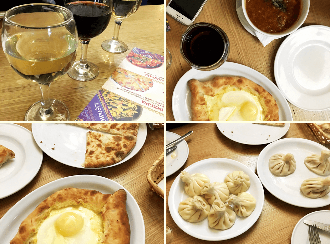 Malutka restauracja położona 3 minuty spacerem od rynku to hit naszego wyjazdu. Jedliśmy tam aż trzy razy rezygnując tym samym z kolejnych eksperymentów. Jedyną jej wadą jest to, że w środku jest bardzo mało miejsca, przez to często trzeba czekać w kolejce na stolik. Jedzenie za to rekompensuje wszystko, a miejsce można zarezerwować telefonicznie! Kelnerki mówią świetnie po polsku, menu też jest między innymi w naszym języku, więc nie musimy strzelać przy wyborze dań z karty. Szczególnie polecamy Wam chaczapuri po adżarsku (danie z jajkiem na zdjęciu) za 68 uah oraz chinkali z serem tak świeżym, jakiego nigdy wcześniej nie miałam okazji spróbować (pieróg na zdjęciu). Ceny są śmiesznie niskie, a potrawy sycące i przygotowywane z wielką starannością. Tam na pewno jeszcze wrócimy!