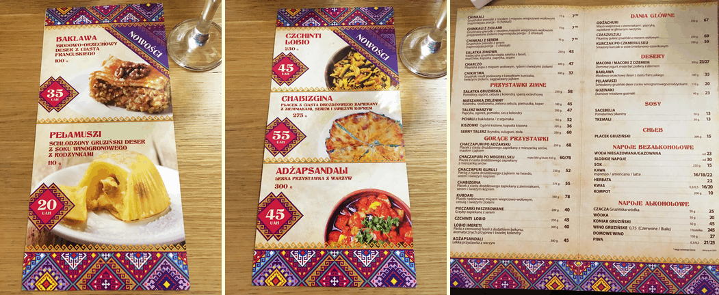 Malutka restauracja położona 3 minuty spacerem od rynku to hit naszego wyjazdu. Jedliśmy tam aż trzy razy rezygnując tym samym z kolejnych eksperymentów. Jedyną jej wadą jest to, że w środku jest bardzo mało miejsca, przez to często trzeba czekać w kolejce na stolik. Jedzenie za to rekompensuje wszystko, a miejsce można zarezerwować telefonicznie! Kelnerki mówią świetnie po polsku, menu też jest między innymi w naszym języku, więc nie musimy strzelać przy wyborze dań z karty. Szczególnie polecamy Wam chaczapuri po adżarsku (danie z jajkiem na zdjęciu) za 68 uah oraz chinkali z serem tak świeżym, jakiego nigdy wcześniej nie miałam okazji spróbować (pieróg na zdjęciu). Ceny są śmiesznie niskie, a potrawy sycące i przygotowywane z wielką starannością. Tam na pewno jeszcze wrócimy!