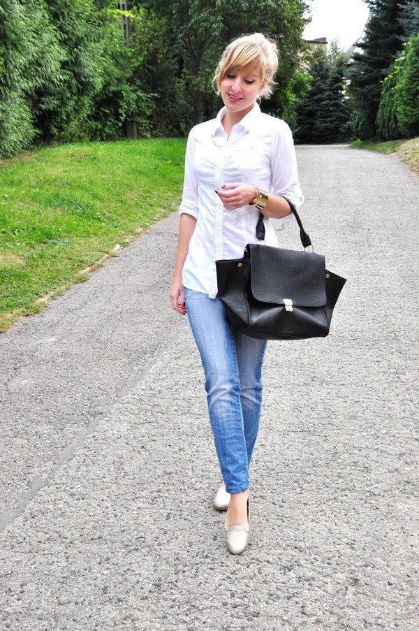 Great way of taking a simple jeans and white shirt and making it stylish and fresh!