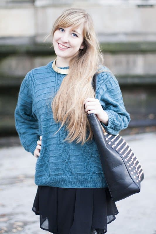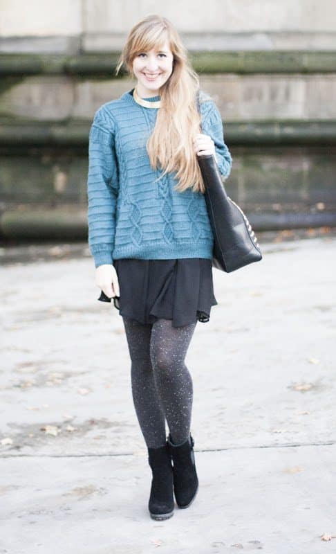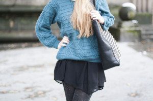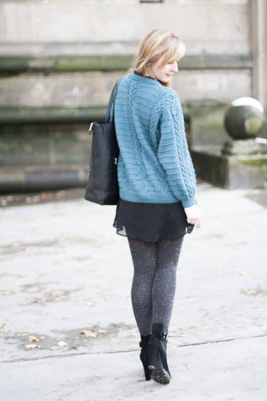 W zasadzie ten post jest bardzo podobny do poprzedniego. Mój ulubiony sweter jest na tyle uniwersalny, że wygląda dobrze z sukienką jak i ze spodniami. Przynajmniej tak mi się wydaje 😉 Szczerze mówiąc nie jestem do końca zadowolona z efektu krótkich, grubych nóżek osiągniętych dzięki grubym rajstopom i botkom za kostkę, ale za to z ręką na sercu mogę powiedzieć, że było mi ciepło i wygodnie. Nawiązując do Waszych pytań, buty są bardzo ciepłe i niesamowicie stabilne, mimo wysokich obcasów jestem w stanie przechodzić w nich spokojnie cały dzień, nie marząc o wracaniu boso do domu.