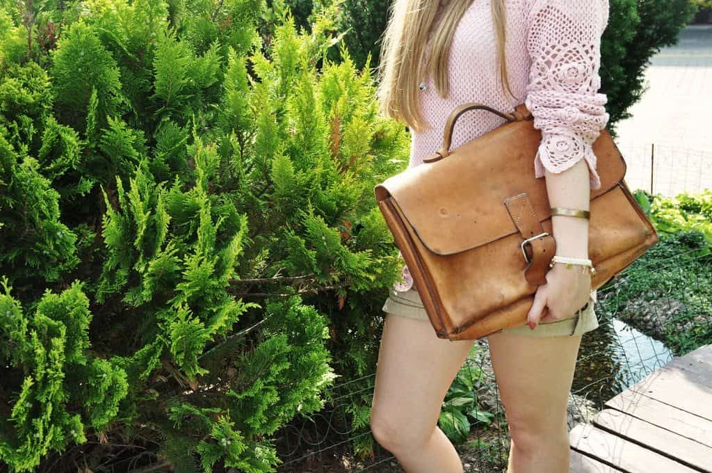 great vintage items!! that sweater is awesome, i keep saying it: I LOVE PINK FOR SUMMER!!! shorts, lightweights sweaters and shirts! and this bag is beyond perfect! the brown is a great touch! you go!