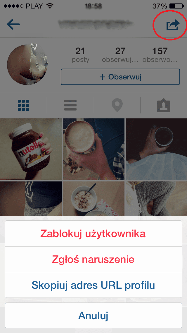 Jeśli masz niechcianego wielbiciela, albo nielubianą koleżankę, możesz im skutecznie uniemożliwić podglądanie Cię na instagramie. Wystarczy wejść na konto tej osoby i kliknąć ikonę przy jej nazwie użytkownika. W iphonie jest to grafika podobna do „share”. Tam możesz zgłosić naruszenie zasad, lub zablokować delikwenta. Nie będzie miał więcej dostępu do Twojej galerii. Zawsze możesz też ustawić swoje konto jako prywatne i na bieżąco kontrolować, kto ma dostęp do Twojej galerii.