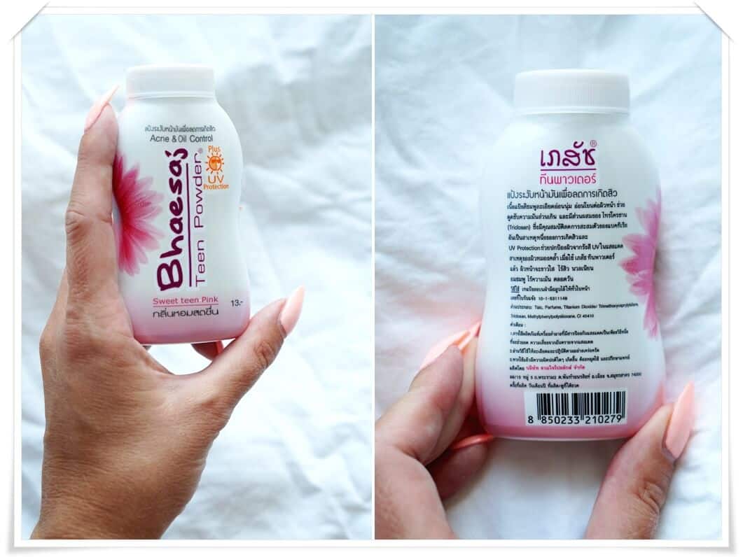 Puder tajskiej produkcji do ciała i twarzy, kosztował 13 bahtów, pojemność również 50 gram. Jego skład jest bardzo krótki, ale nie najlepszy. Zawiera substancje komedogenne, czyli jak się dzisiaj nauczyłam, takie które mogą zapychać skórę oraz konserwant. Mimo to przeznaczony jest do twarzy i zawiera triclosan, który ma minimalizować występowanie bakterii na twarzy przez co zapobiegać trądzikowi. Co mnie zaskoczyło – jest różowy! Już wiem dlaczego młode Azjatki są takie dziwnie zarumienione na buzi. Ja nie mam problemu trądziku i nie mam zamiaru stosować go na buzię.