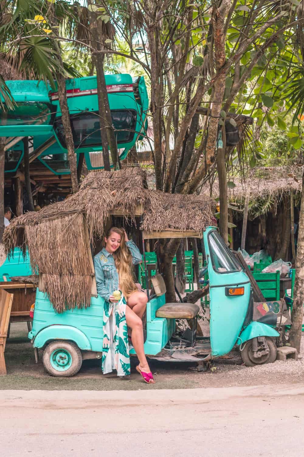W Tulum są właściwie dwie opcje: mieszkać blisko plaży w jednym z mega fancy kurortów, które są naprawdę przepiękne, w stylu boho, niesamowicie urządzone, ale niestety też drogie, albo zatrzymać się dalej od plaży w willach i airbnb. Na każdym kroku znajdują się wypożyczalnie rowerów i skuterów, więc z poruszaniem się po miasteczku, czy dotarciem na plażę na pewno nie będzie problemu. My wybraliśmy właśnie tę drugą opcję i cały pobyt jeździliśmy skuterem. Taka forma zwiedzania najbardziej nam odpowiada. Jeśli chcesz zaoszczędzić na zakwaterowaniu odbierz 108 zł na pierwszy nocleg z Airbnb.