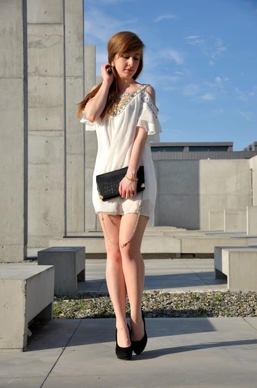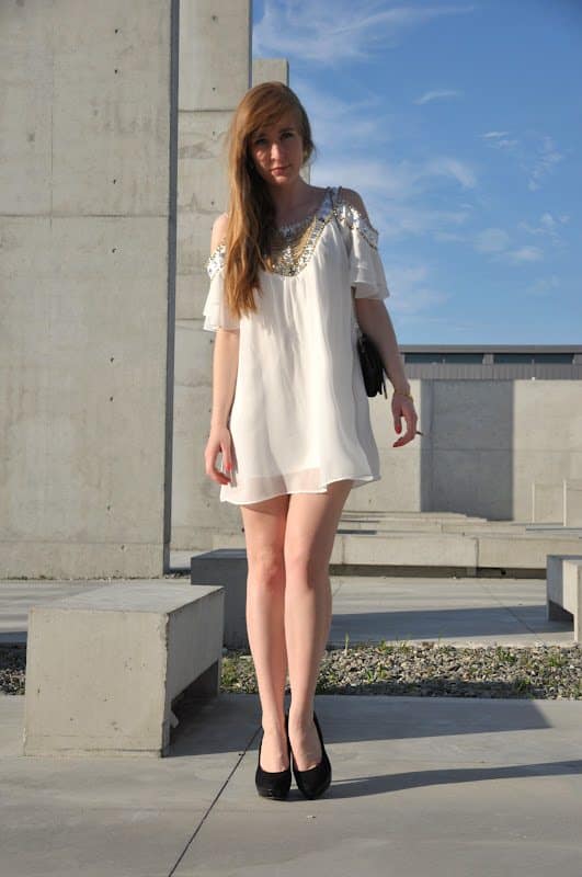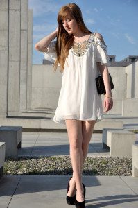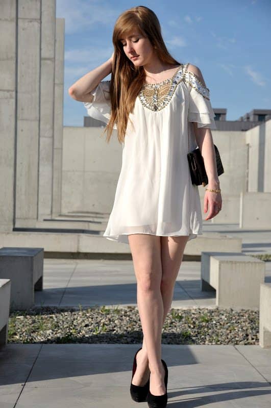 Prosty zestaw składający się z małej białej z Oasap oraz szpilek jest moim hitem na gorące dni. Uprzedzając Wasze obawy, nie chodzę po mieście bez krótkich legginsów pod spodem, jednak nie udało mi się zaprezentować Wam tego tym razem. Spędzamy ze Skarbem majówkę w Zakopanem. Postaram się zaglądać na bloga co jakiś czas, mam tu dostęp do internetu. Życzę wszystkim udanej majówki!