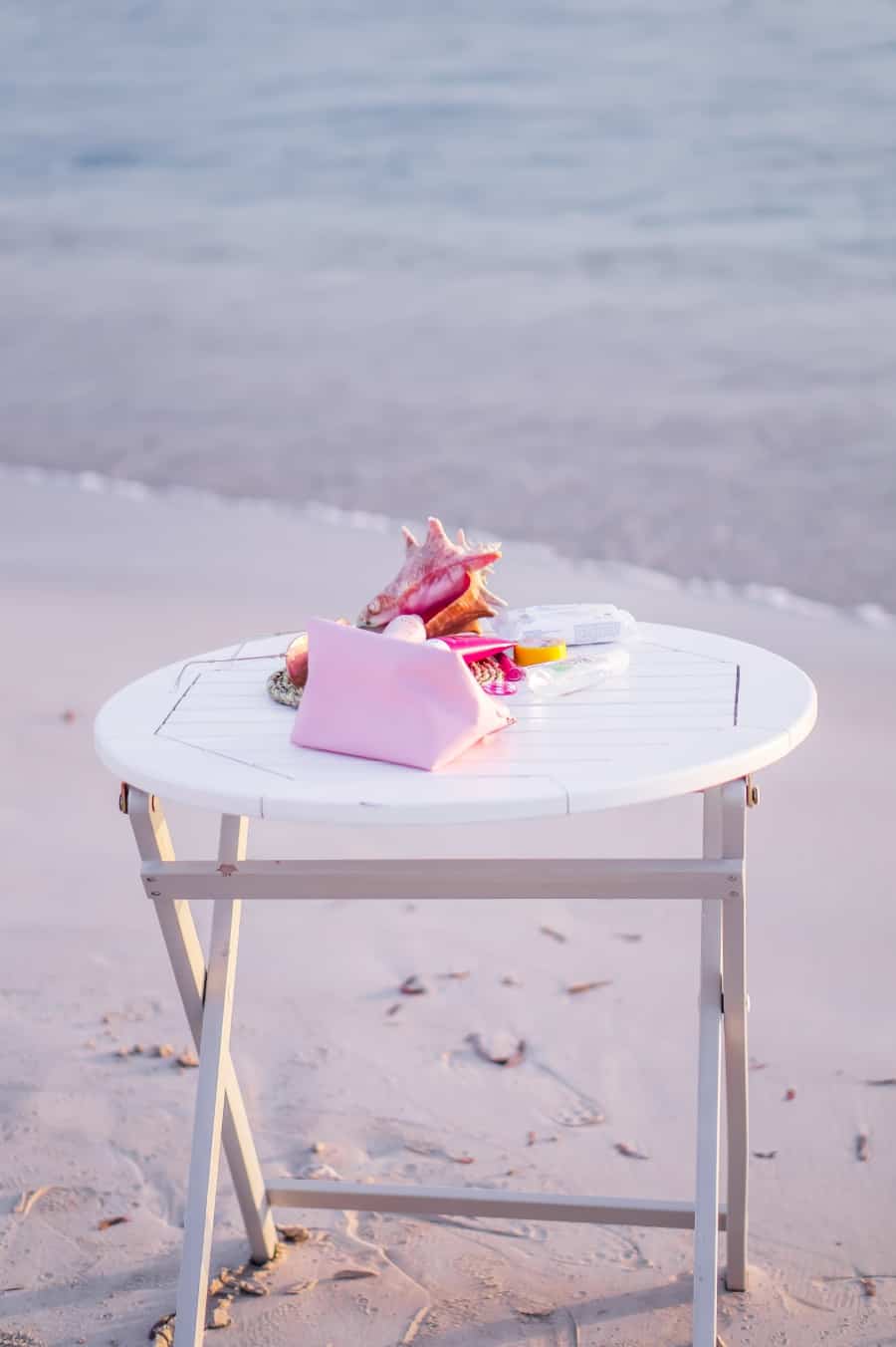 Pytanie pierwsze: tak, niosłam to wszystko na plażę tylko po to, że by zrobić ładne zdjęcia. Tak, stół też 🙂 A trzymając się tematu, zobaczmy co tym razem miałam przy sobie podczas podróży. Pamiętajcie, że mimo tego, że zdjęcia sugerują torbę plażową, mówimy o kosmetyczce do samolotu/pociągu.