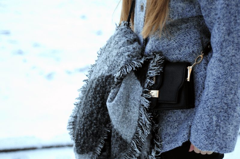 ootd zima 2015 płaszcz sweter szary romwe chusta szal sheinside ciepły szary zestaw z szarym płaszczem romwe sheinside czarna torebka szal ootd zima workery z paskami ćwiekami worker boots za kostkęzdjęcia: Łukasz