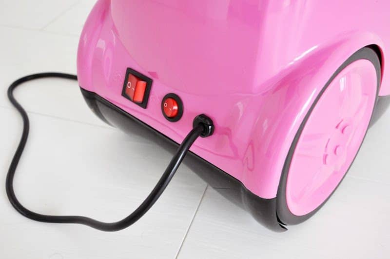 Steamaster jest bardzo prosty w obsłudze. Wystarczy nalać wody do zbiornika, podłączyć i przycisnąć włącznik – jest gotowy do pracy w mniej niż minutę! Jedyną wadą jest to, że wymaga specjalnej wody – destylowanej lub demineralizowanej. Możemy kupić taką wszędzie, nawet w Tesco. Dostępna jest także zapachowa! 🙂 Wracając do obsługi, prasowacz posiada dwie wygodne końcówki do prasowania, dzięki którym dotrzemy do nawet najbardziej niedostępnych miejsc. Dodatkowa nakładka ze szczotką idealnie nadaje się do odświeżania kanap i foteli – wyglądają jak nowe! Para doskonale odświeża również garderobę – ubrania wyjęte z szafy po długiej zimie pachną jak świeżo po praniu. Skutecznie pozbywa się nieprzyjemnego zapachu papierosów z płaszczy, kurtek i żakietów – nie potrzebujemy już pralni! Żeby nie było – ja nie palę 😉 Natomiast moi znajomi czasem tak, a ja nienawidzę tego zapachu.