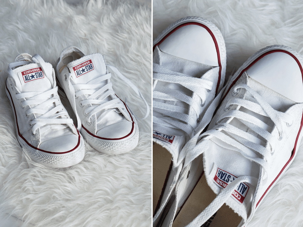 Zacznijmy od tego, że moje białe trampki wiele w swym krótkim życiu przeszły. Podczas swojego pierwszego spaceru złapał nas deszcz i od bryzgającego wszędzie błota conversy zmieniły kolor na szare. W zasadzie pogodziłam się z tym, że śnieżnobiałe to one