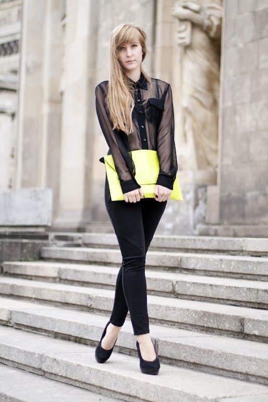 love the look, the sheer blouse is amazing, and i love the neon accents