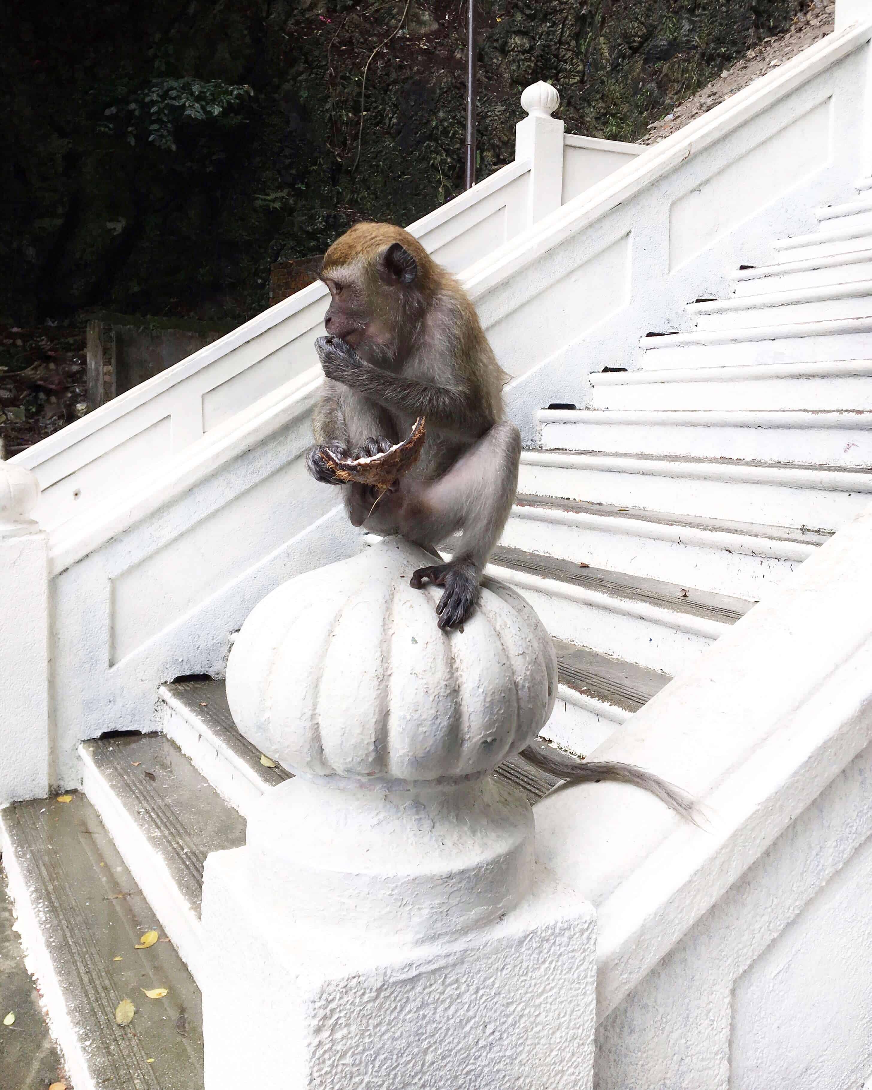 Jaskinie Batu to zdecydowanie najlepsze co widzieliśmy w KL! To kompleks jaskiń położony około 13 km od miasta. W środku są hinduskie miejsca kultu, jest to docelowe miejsce pielgrzymek. Najlepiej dostać się tam pociągiem z dworca głównego (bilet kosztuje około 2 zł). Kolejka jedzie tam około 40 minut. Trzeba uważać na oznaczenia wagonów, bo środkowa część pociągu zarezerwowana jest wyłącznie dla kobiet. Jeśli podróżujecie więc w mieszanym składzie, wybierzcie wagony bez oznaczenia. Pociąg jest komfortowy, podobny do tych, które jeżdżą po Hiszpanii. Na miejscu jaskinie skupione są dość blisko siebie. Wstęp do dwóch jest płatny, jedna jest darmowa (najwyższa). My weszliśmy do trzech świątyń i poświęciliśmy na to pół dnia, ale było warto. Jaskinie są niesamowite, aż ciężko to opisać. Do największej i najważniejszej prowadzą wysokie schody (ponad 200 stopni) na których grasują małpy gotowe wyrwać turystom rzeczy. Jak zawsze ostrzegam: nie wyciągajcie rąk do małp. W środku też się od nich roi, co potęguje wrażenie, że jest się w jakimś dzikim, pierwotnym miejscu kultu.