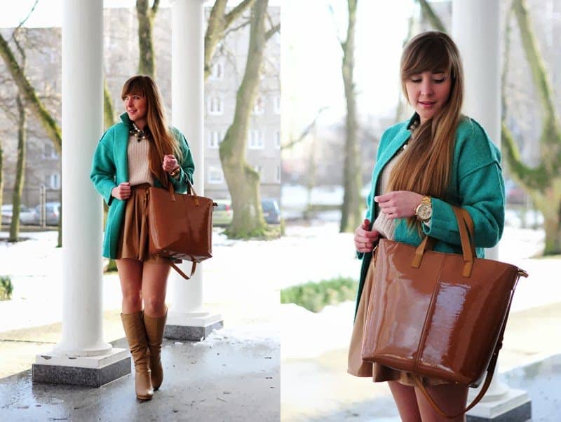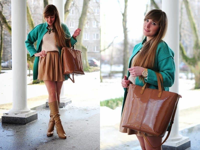 Today’s outfit – pastel green coat and beige clothing really feels like spring, right? Baroque necklace with pearls fulfils the look perfectly. As always, when winter is passing the carmel shopper Zara bag comes back to the blog. I hope it’s not boring yet. Let me know what you think ;))